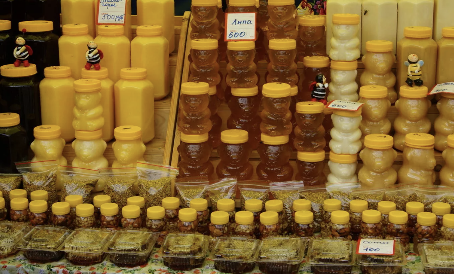 (꽃꿀은 600여종의 야생화에서 채취하며 천연 아미노산이 풍부하고 당화 효소 함유량이 러시아 연방 기준의 5배에 달한다. 메밀꿀은 ‘꿀의 왕’으로 불리며 당화 효소, 폴리페놀, 미네랄이 특히 풍부하다. 피나무꿀은 20여종의 아미노산, 비타민B군, 미네랄이 풍부하며 항균, 항염증 작용이 탁월해 ‘천연 감기약’으로 불리기도 한다.